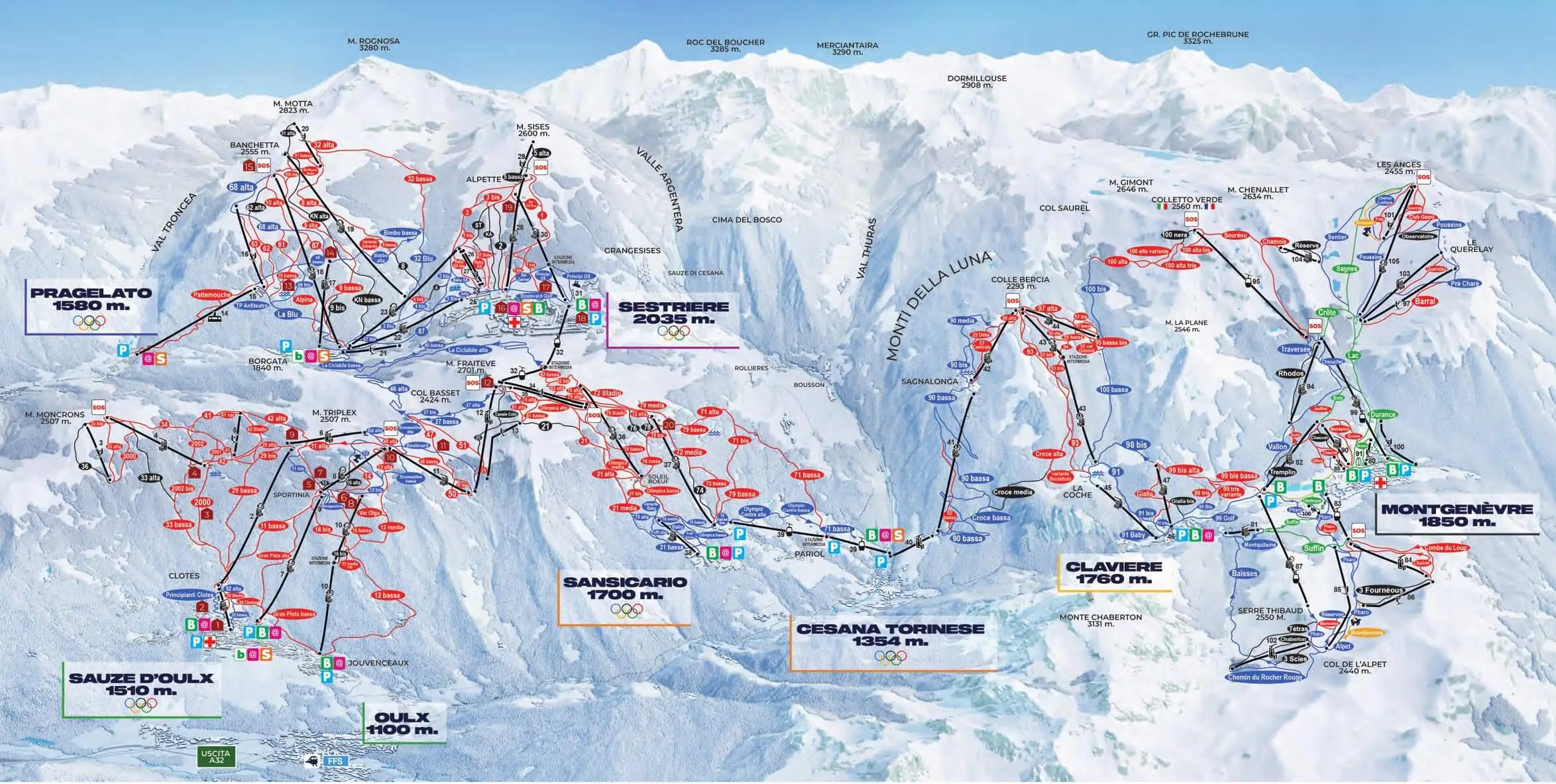 Sansicario – nowoczesna i bardzo dobrze zorganizowana stacja, położona na zboczach Monte Fraiteve. Znana z czerwonych, szerokich tras i świetnych warunków śniegowych. To właśnie tutaj trenowała włoska kadra olimpijska.